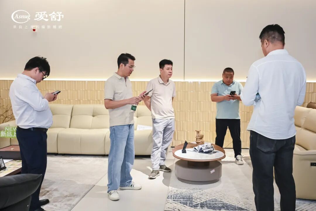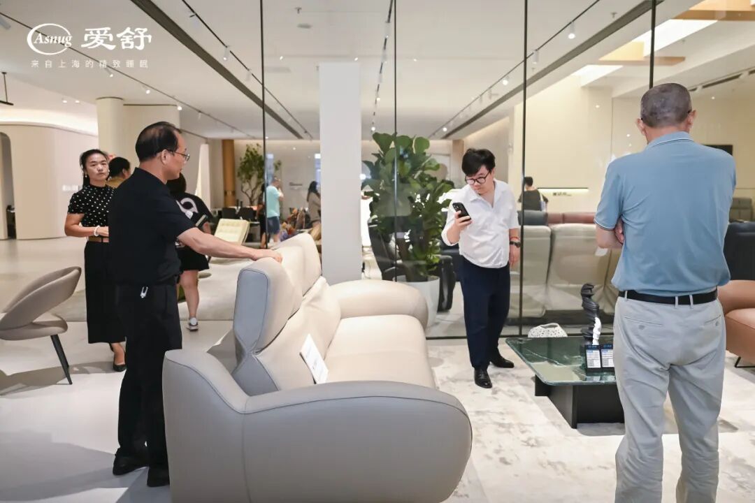 开业仪式后,嘉宾们在工作人员的引导下,沉浸式参观了爱舒5000㎡豪华展厅,亲手触摸品质家居的质感,试躺新品床垫感受柔软包裹,沉浸式体验“理想家”的模样。