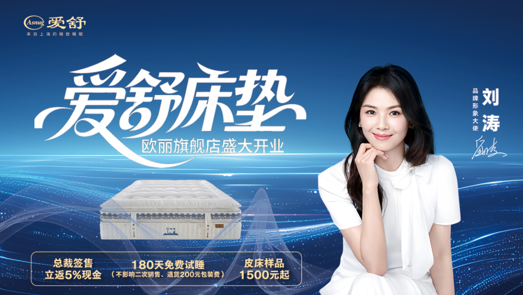 作为深耕家居领域三十多年的实力品牌,爱舒始终以 “为国人打造舒适健康的睡眠体验,改善国人睡眠品质” 为企业使命,更携手国民女神刘涛共同传达这一使命,让品质睡眠走进千万家庭。如今,爱舒将这份舒适带到红星欧丽,全新旗舰店不仅带来更丰富的床垫及家居产品,更准备了开业专属福利和精彩活动,让您把健康、欢乐与实惠一同带回家。