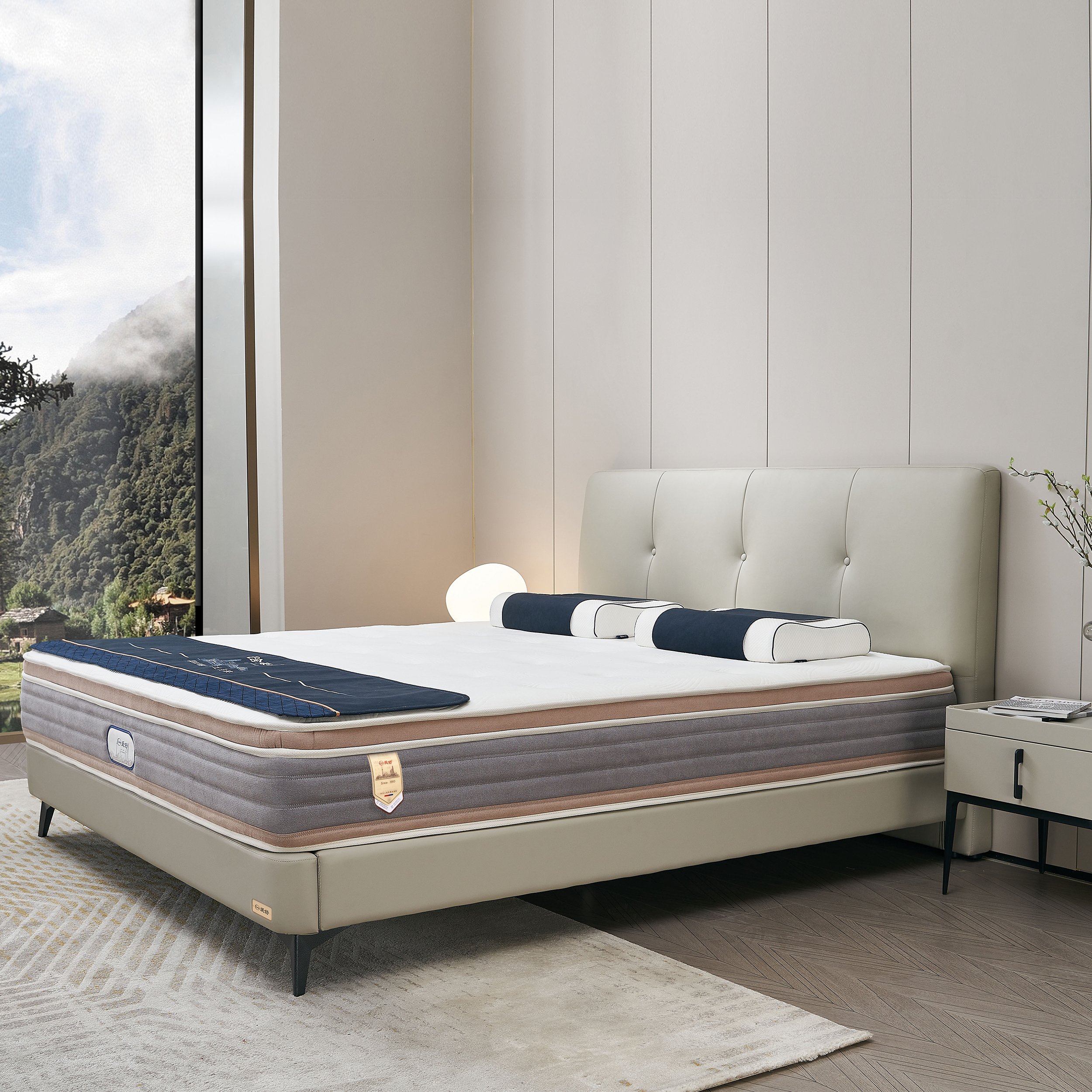 设计灵感来源于香甜的奶酪芝士,柔软醇厚,为生活注入一抹温暖的活力,带来甜蜜惬意的卧室体验,时尚的拉点设计,点缀出慵懒随意的生活气息。