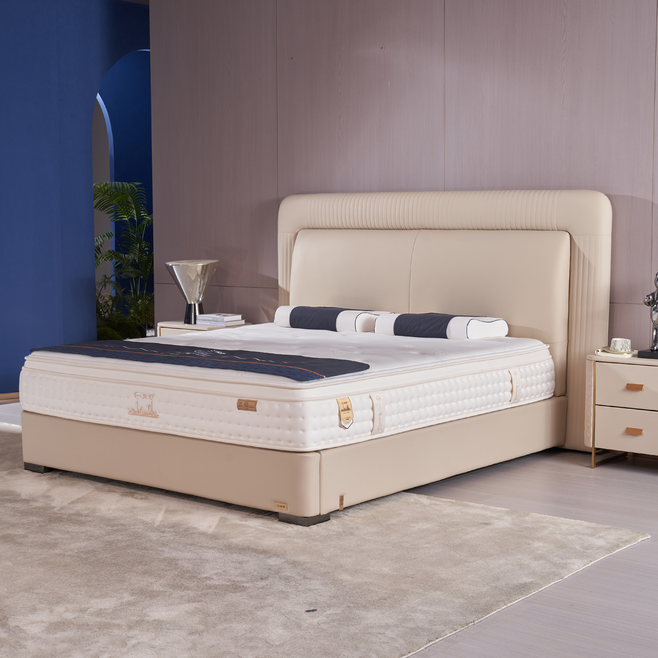 设计灵感源于古老乐器竖琴,穿越时空的碰撞,强调简单、实用和舒适性;对于新婚夫妇来说,这款床无疑是一个浪漫的选择,寓意着琴瑟和鸣、幸福美满。